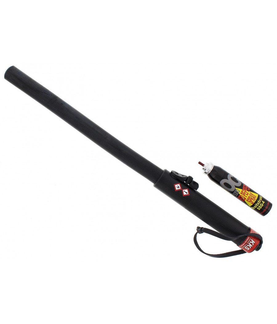 Ein klassischer Gummiknüppel kombiniert mit einem OC-5000 Pfefferspray 40 ml. Reichweite ca. 3 m
